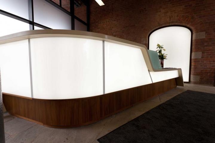 Refurbishment of the 2nd floor office and ground floor reception area included NES illuminating the curved reception desk with 6 LED Light Panels.